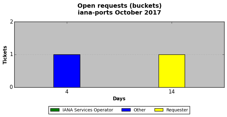 October 2017Due to the nature of resource request reviews, ICANN/IANA and the IETF community are jointly responsible for cooperatively managing the resource request process. ICANN/IANA has control over the functions it performs directly, e.g., receiving requests, making sure they are syntactically and semantically sensible, forwarding the requests to Designated Experts where appropriate, creating and modifying the registries, etc. The IETF community has direct or indirect control over functions performed by third parties, including IESG Designated Experts, the IESG, the IAB, the RFC Editor, and the requester. As such, the processing of requests has a “gross processing time” calendar days goal established for each function and a “net processing time” calendar days goal to reflect time expended directly by ICANN/IANA.