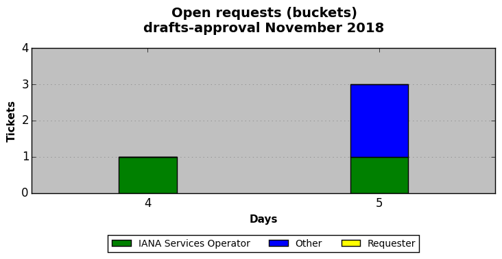 November 2018Due to the nature of resource request reviews, ICANN/IANA and the IETF community are jointly responsible for cooperatively managing the resource request process. ICANN/IANA has control over the functions it performs directly, e.g., receiving requests, making sure they are syntactically and semantically sensible, forwarding the requests to Designated Experts where appropriate, creating and modifying the registries, etc. The IETF community has direct or indirect control over functions performed by third parties, including IESG Designated Experts, the IESG, the IAB, the RFC Editor, and the requester. As such, the processing of requests has a “gross processing time” calendar days goal established for each function and a “net processing time” calendar days goal to reflect time expended directly by ICANN/IANA.