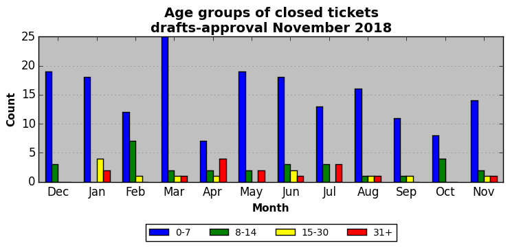 The statistics below are offered to measure IANA's fulfillment of the goals established in the ICANN / IANA - IETF MoU Supplemental Agreement. Further details on these goals and statistics can be found by reviewing the agreement.