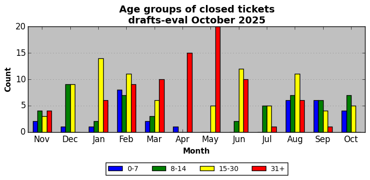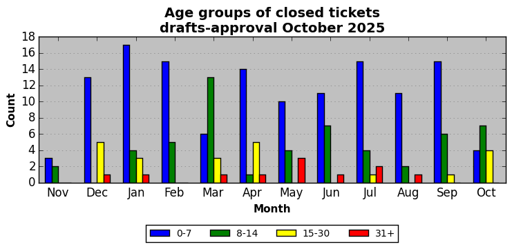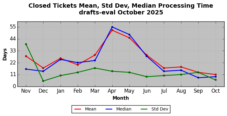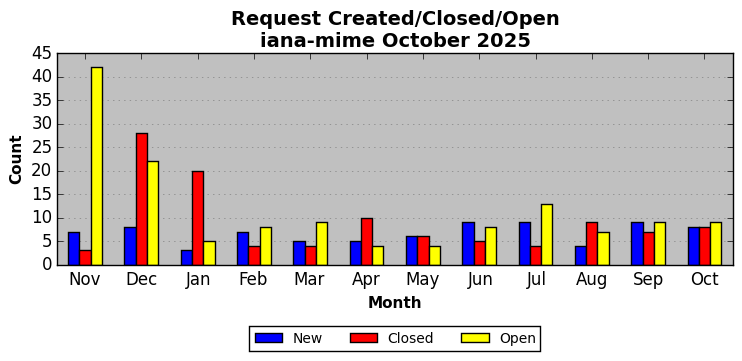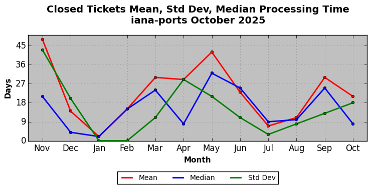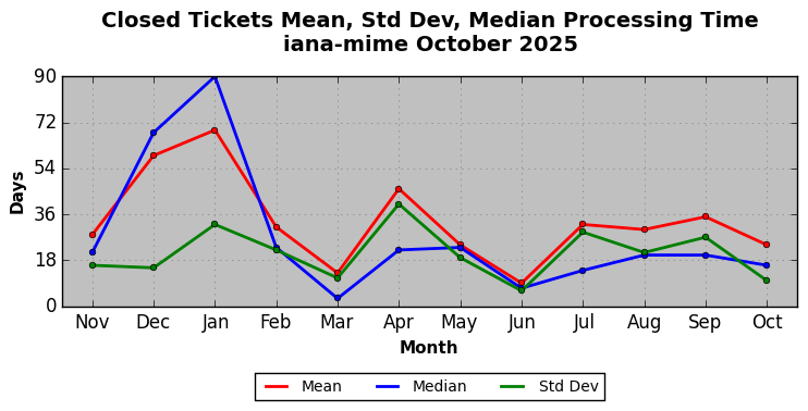 The statistics below are offered to measure IANA's fulfillment of the goals established in the ICANN / IANA - IETF MoU Supplemental Agreement. Further details on these goals and statistics can be found by reviewing the agreement.